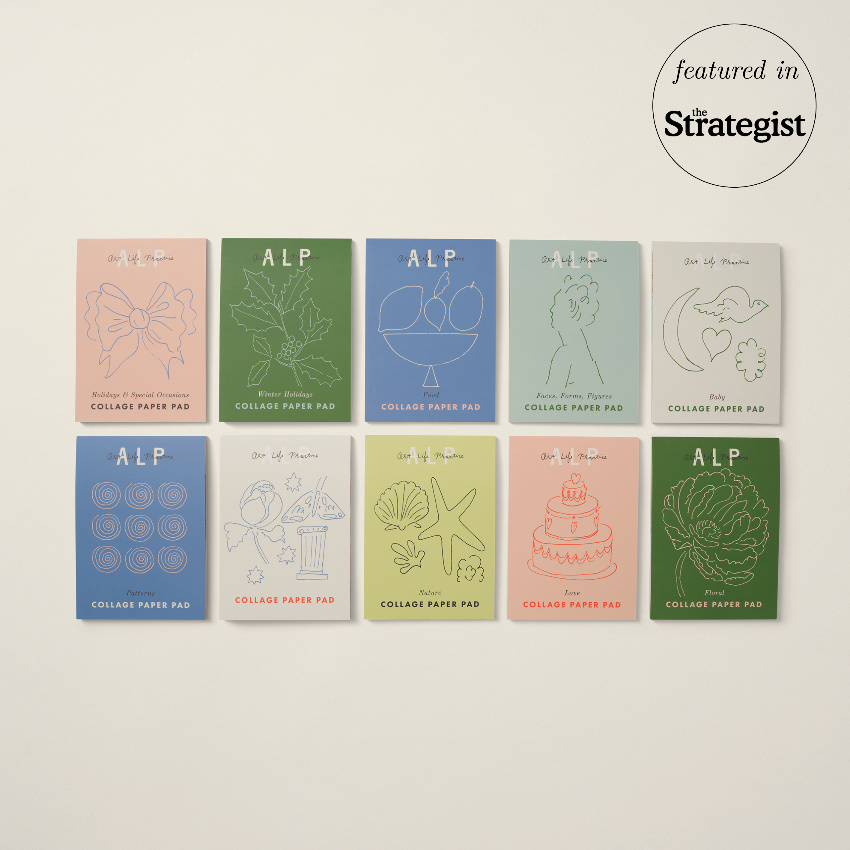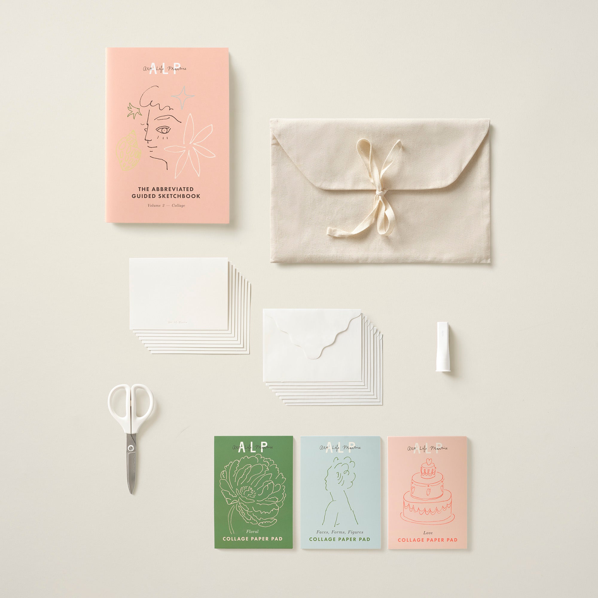 The Collage Starter Kit comes with everything you need to begin a collage practice –– complete with materials, instruction, and accessible creative prompts. Perfect for mood boards, greeting cards, and other DIY collage projects.
